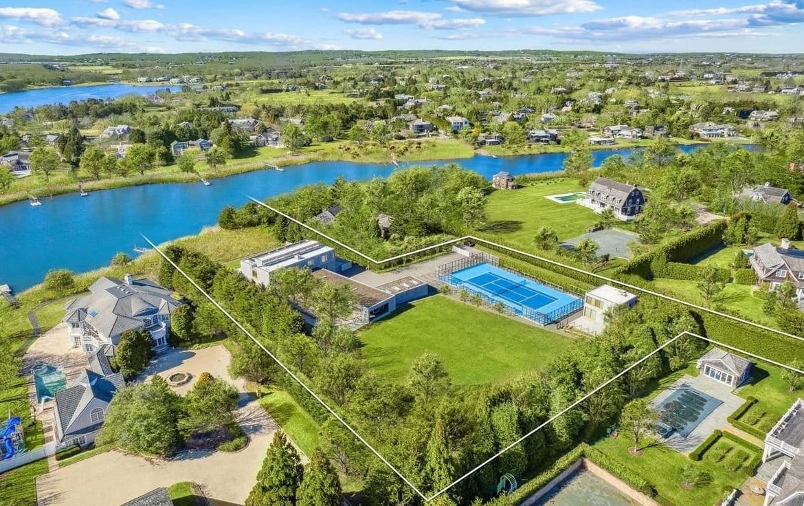 First time listed! Set on 2.68 acres, this Andrew Berman designed estate, is the perfect setting for a fabulous Hampton’s family home. Incredible glass walled living and dining rooms overlook the gunite heated pool, the waters of Calf Creek and spectacular quintessential Hampton’s sunsets. Fully equipped chef’s kitchen with three refrigerators, two dishwashers, formal dining, fabulous den and offices accommodating all work-from-home needs. Eight ensuite bedrooms, two additional full baths and a powder room providing ample guest accommodation. The glass walled gym with a sauna and a steam room provide the equivalent of resort standard amenities and overlook the gardens and all-weather tennis court. The lower level has a second gym, playroom, table tennis, pool table and large laundry. On the south side of the house an allè of elm trees shade the area for grilling and alfresco dining. A dock on the bay provides direct access to Scott Cameron Beach, either by boat, jet ski, kayak or paddle board. Adjoining the pool are two outdoor showers. There is a detached three car garage, an apple orchard, grapevines, a picturesque garden and a breathtaking wildflower roof garden. The recently refreshed studio has a kitchenette and two baths. This will not last!
