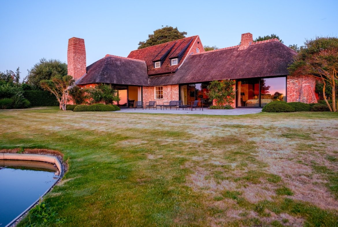 ’Het Spiegelmeer’, located on Molenweg in Zuidzande, is a true architectural masterpiece by renowned architect Dominique Koch. She has seamlessly combined her deep-rooted connection with West Zeeland Flanders and typical cottage style with the surrounding landscape. Every volume, every view and every line of the estate has been carefully tailored to its surroundings. The reflection of the water, the vast skies and the rhythm of the landscape are not only respected, they are enhanced. The result is a serene living environment with various elements that exude tranquillity and refinement.