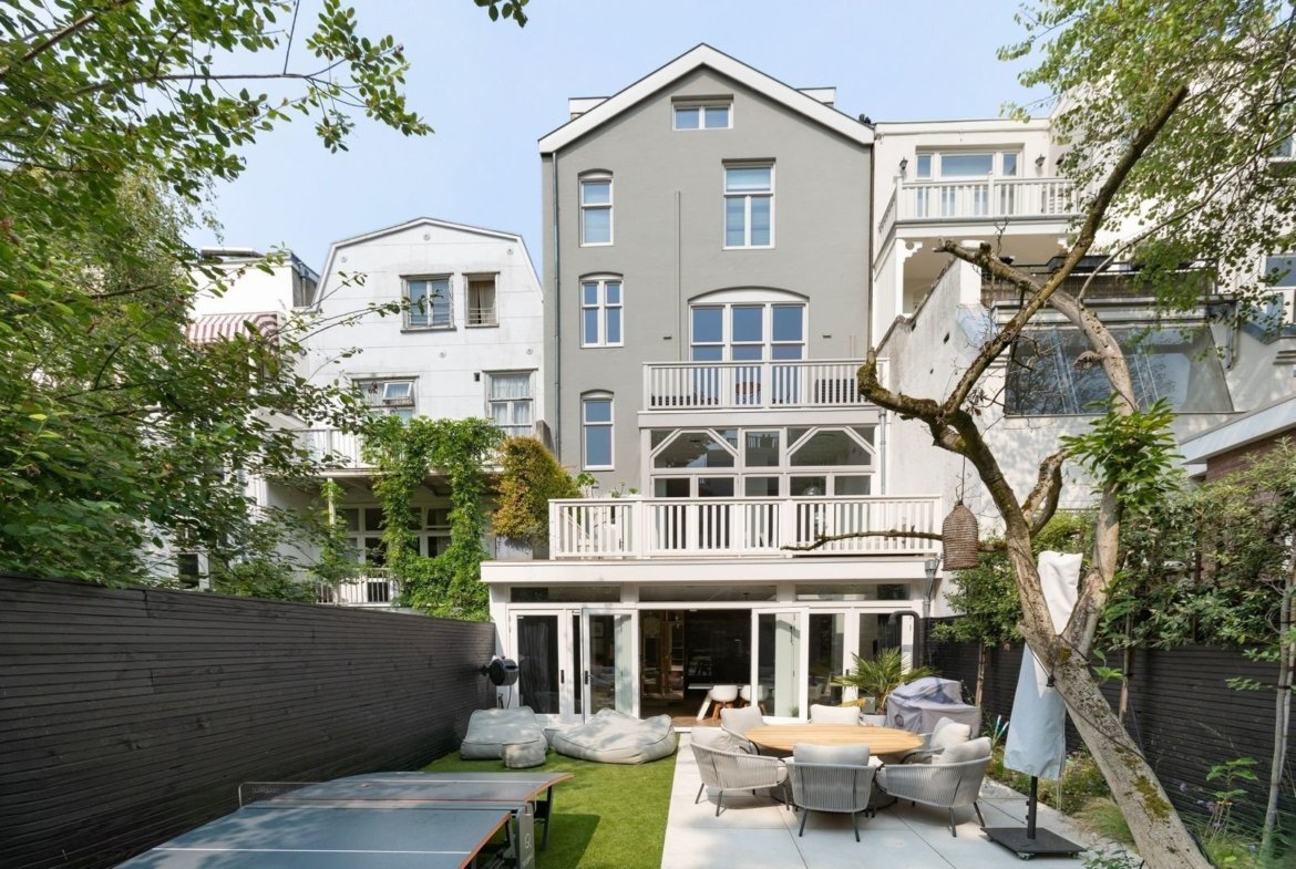 Experience the ultimate in living comfort in this high-quality, fully renovated 375 m² (GFA 426 m²) townhouse, located in Amsterdam’s most prestigious neighbourhood: Oud-Zuid. This magnificent property not only offers a generous living space, but also a beautifully landscaped south-facing garden of 84 m², two spacious terraces and a charming balcony. All this on freehold land, a rarity in this sought-after neighbourhood.