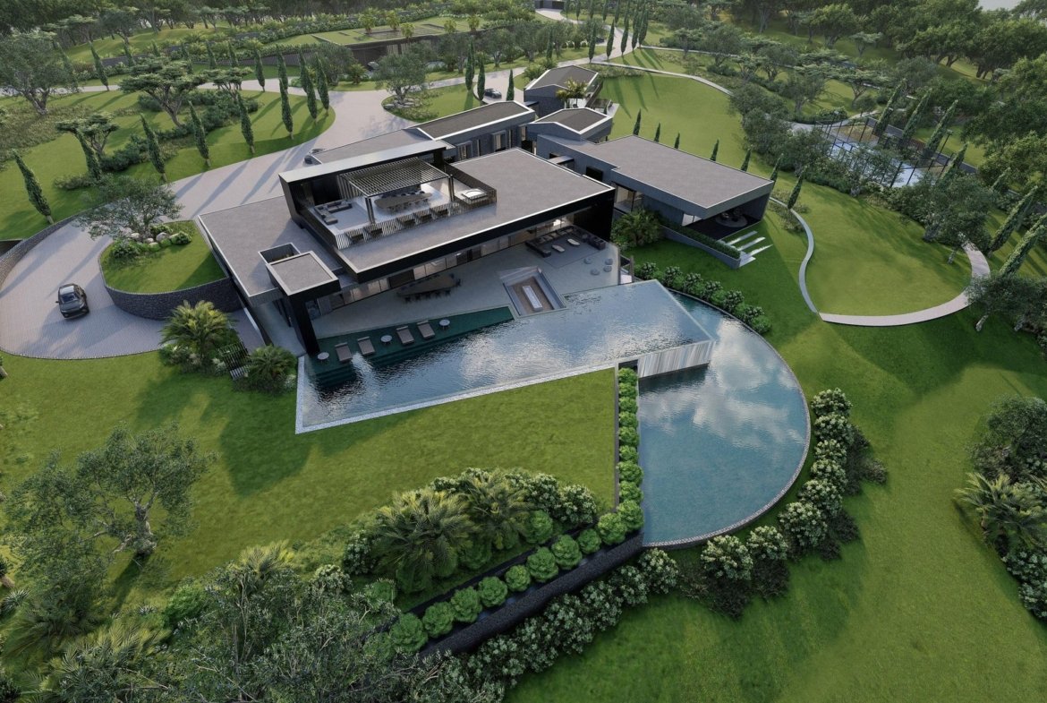 The home’s interior boasts eight en-suite bedrooms, each a sanctuary of comfort and sophistication, adorned with the finest materials and finishes. Entertainment and wellness are at the heart of this estate, offering a private cinema room, a wine cellar perfect for connoisseurs, and a fully equipped gym. For those seeking relaxation, the property features two heated swimming pools and a rooftop terrace with a jacuzzi and outdoor kitchen, providing the perfect vantage point to soak in the magnificent views.
