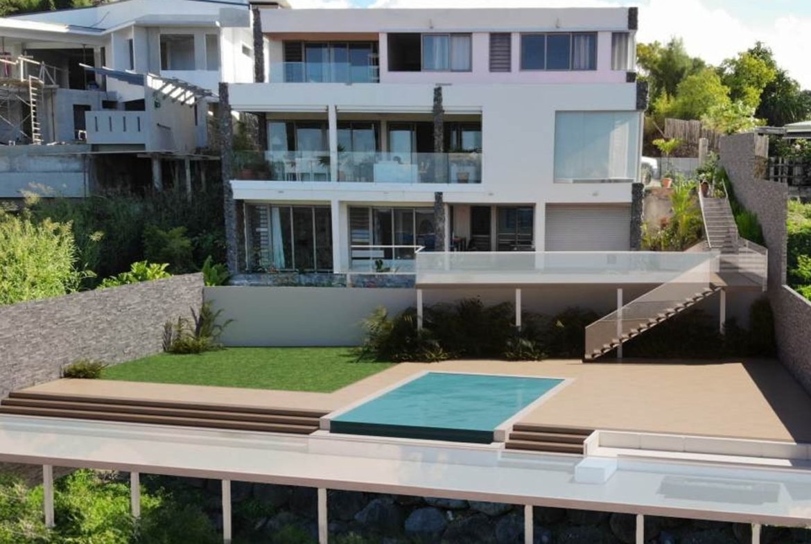 Luxury Villa – 400 m² of Living Space in Arue. Discover this superb villa, located in Arue with breathtaking views of Mount Tahara. With its generous living space and 10 rooms, this property is a true haven, combining spaciousness and high-quality materials. The vast rooms, bathed in natural light, invite relaxation and shared moments with family and friends. The living spaces are designed to combine functionality and aesthetics, with beautiful finishes that reflect the care lavished on this property. The villa includes a completely separate 75 m² one-bedroom apartment with its own entrance and parking. This villa is much more than just a residence; it’s a true home. The fully equipped kitchen, open to the living room, creates a warm and welcoming atmosphere, perfect for family meals or evenings with friends. The spacious and bright bedrooms offer a haven of peace for restful nights. The garden is ready to be landscaped, giving you the freedom to create your own design with or without a swimming pool. Imagine enjoying a glass of wine on the terrace, surrounded by an idyllic setting, or hosting barbecues with friends in a tranquil environment overlooking the ocean and mountains. Located in a sought-after residential area, this villa benefits from a prime location, just 5 minutes from the town and the hospital. Don’t miss this unique opportunity to live in a luxury villa where every detail has been designed for your comfort and well-being.