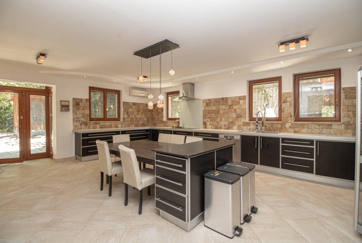 In Budapest, at the border of the 2nd and 3rd districts, a 400 sqm premium panoramic 4-level family house is available for sale on a 1400 sqm plot. At the lowest level you can find the spacious garage for 2 cars and a storage room. Above this floor there is a gym and a toilet. The living area is on 2 levels. On the entrance level there is a spacious living room with open plan kitchen and dining area and with terrace connection. The dining area can also be set up in the ultra-spacious 41 sqm kitchen and with this solution a billiard room with a bar counter could be gained. On the same level there is a guest room with bathroom and a guest toilet. Upstairs you can find the master bedroom with en-suite bathroom, two walk-in closets and a terrace. There are additional 3 bedrooms, a bathroom and a laundry room on this level and a terrace with beautiful views. The house has a separate, heated guest house with a kitchen, a bathroom and a wine cellar. In addition to the double garage, there are additional parking places in the yard. The property is an ideal family home with large living spaces in a quiet, green environment yet minutes from the city.