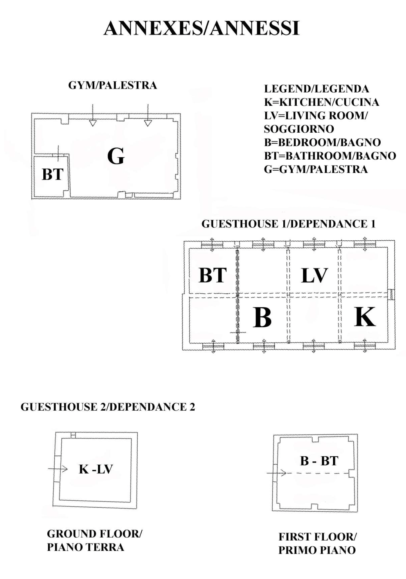 Completing the estate is a second independent 50-sqm guesthouse, renovated in contemporary style and arranged over two levels, with a modern kitchen on the ground floor and a bedroom with en-suite bathroom upstairs, ideal for guests or tourist rentals.