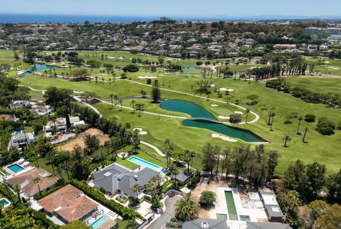 Welcome to Villa Solstice, an awe-inspiring frontline golf villa with an unbeatable location in the heart of Nueva Andalucia. Overlooking the prestigious members-only Las Brisas Golf Club, this western-oriented estate offers breathtaking sunsets that inspired its name. The meticulously manicured garden, complete with exquisite landscaping, provides a stunning backdrop for the private pool, ideal for year-round enjoyment. A sunken chill-out area adjacent to the pool adds an extra layer of entertainment space, while the garden’s pergola features a custom bar and alfresco dining area, perfect for outdoor gatherings.