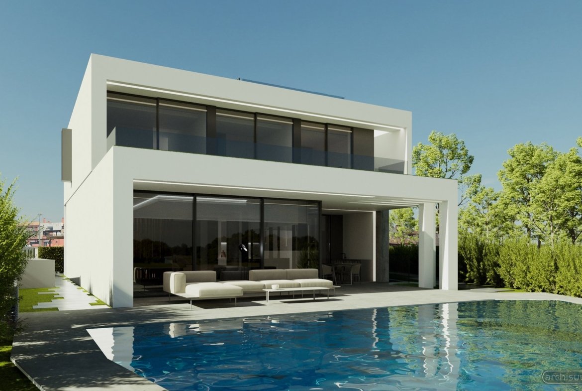 Luxurious villa under construction in a prime, tranquil area of Vilamoura, just 5 minutes from the marina and international school. This modern home features 4 en-suite bedrooms plus an additional suite on the lower level, a spacious living area (52 m²), and a high-end kitchen with Gaggenau appliances. The property boasts a private pool, rooftop terrace with panoramic golf views, and full west-facing exposure. The basement includes a garage, laundry, multi-use room (ideal for gym or cinema), and technical areas. Equipped with underfloor heating throughout (including basement), ducted air conditioning, solar panels, central vacuum, home automation, alarm, and video surveillance for maximum comfort and security.