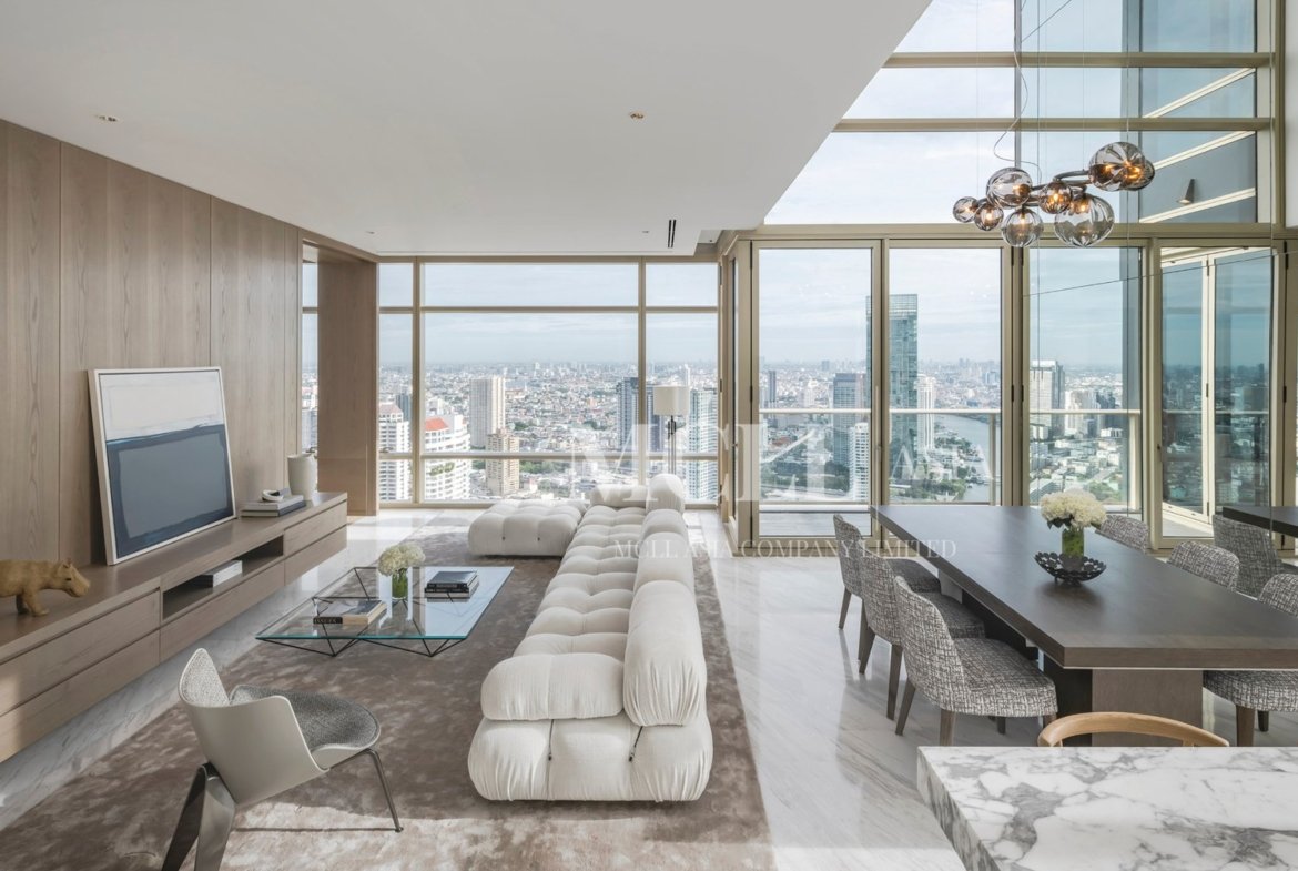 Unit configurations range from 1-5 bedrooms and Penthouses. Residence sizes are from 106 sq.m. to approximately 2,206 sq.m. All Residences are meticulously designed to be corner units, with an open view looking out to both the Chao Phraya River and the city skyline.