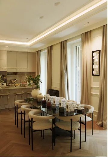 Located just steps from Calle Serrano and Plaza de la Independencia, the home combines original architectural charm with a contemporary and sophisticated interior design.