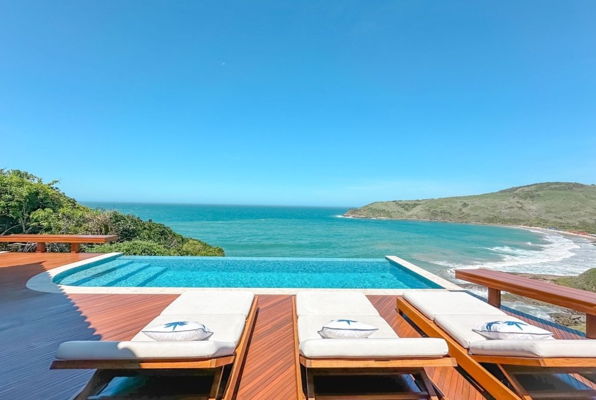 A spacious living and dining room in various areas with an integrated kitchen, 6 suites (4 with sea views), 2 bathrooms, a fantastic outdoor area with stunning views, a gourmet area, barbecue, pizza oven, beer cooler, steam room, hydromassage, and a climate-controlled pool. There is also a large wooden deck, a laundry room, and about 10 parking spaces.