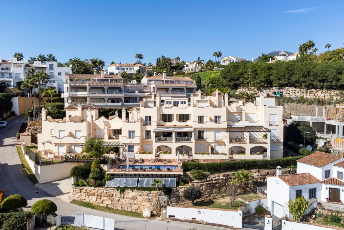 Situated in the quiet gated community of urb. Los Almendros, close to San Pedro de Alcántara and just a short drive to all amenities and the beach, this exceptional south-facing penthouse enjoys sun throughout the day and truly panoramic views over the sea and surrounding mountains.
