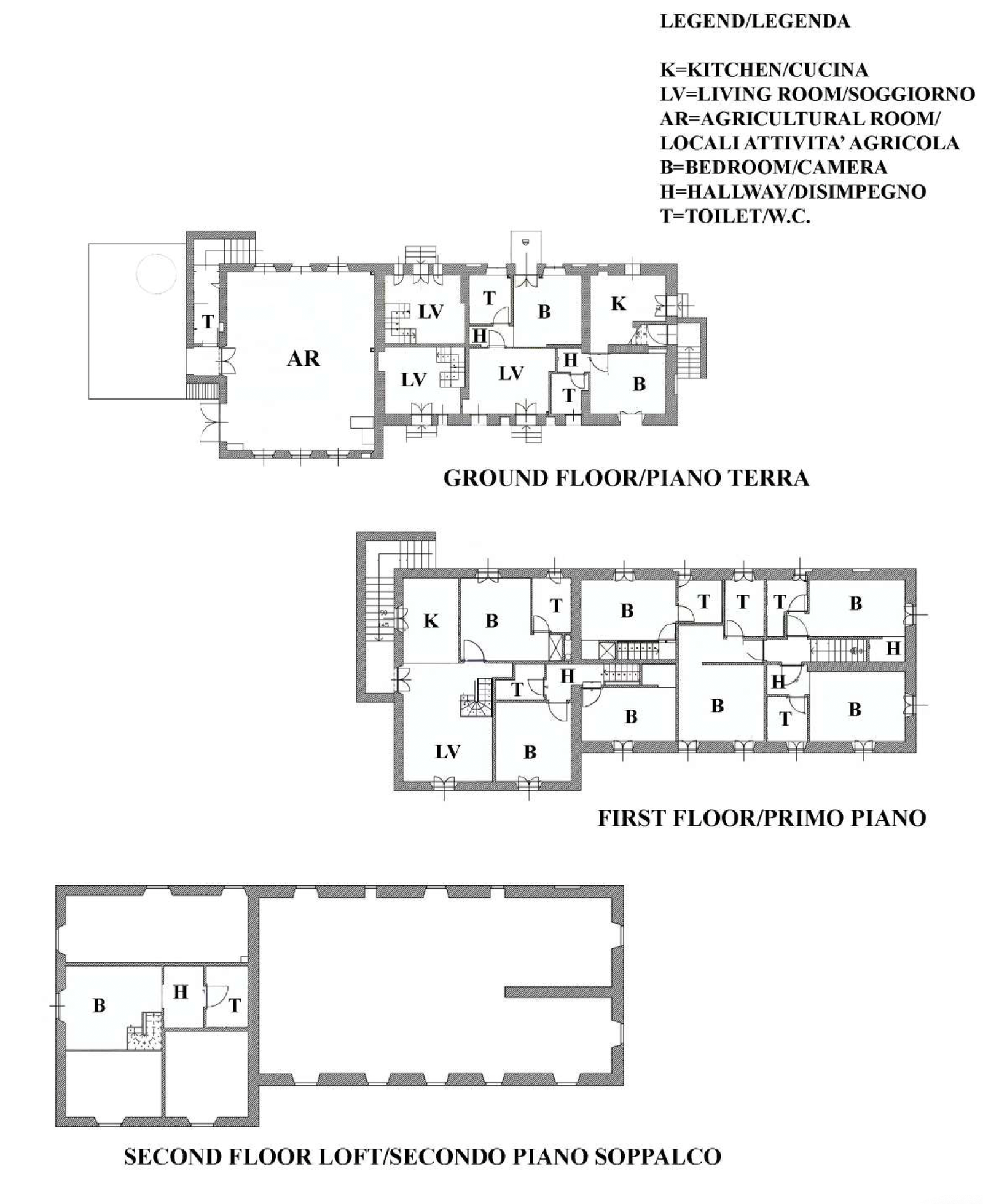The main farmhouse, dating back to the 1600s, has undergone a meticulous restoration that has enhanced every original architectural feature. The building, arranged over two levels, houses five independent apartments: four located on the ground floor and one on the first floor, which extends into a cozy mezzanine. On the same level, there are also three bedrooms, while the ground floor includes a spacious area dedicated to agricultural activities.