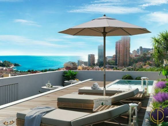 On the second floor, there is a duplex apartment with two double bedrooms. From the open plan kitchen and living area, there is access to a wraparound terrace. Both of the two bedrooms are serviced by individual bathrooms. The third-floor apartment mirrors this apartment, again offering two double bedrooms with separate bathrooms and an open plan kitchen and living area.