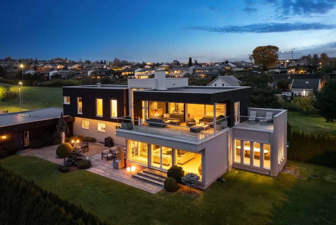 Welcome to a unique and exclusive family home with high standards, distinctive solutions, and fantastic views of Lake Mjøsa, in an attractive and child-friendly area.