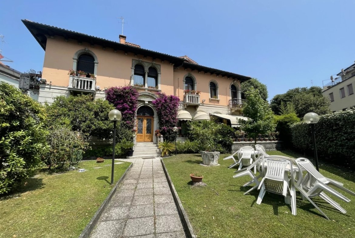 This enchanting Art Nouveau villa, built in 1911 on the Venice Lido by architect Sandi, is noted on a plaque on the villa’s exterior. Surrounded by lush greenery, it offers a relaxing retreat amidst flowering trees. An outdoor veranda connecting to the interior allows guests to enjoy the greenery while enjoying unforgettable lunches or dinners. The main entrance welcomes us into the main part of the villa, where we find a large living room leading to the veranda, a comfortable dining area, a kitchen with French doors leading to the outside, and a bathroom with a window. On the first floor are two double bedrooms, one with an en suite bathroom. The second part of the house offers a delightful apartment, comprising an eat-in kitchen, a living room with a small balcony overlooking the private garden, two bedrooms, two bathrooms, and direct access to a unique roof terrace. The property also includes a double garage and a cellar.