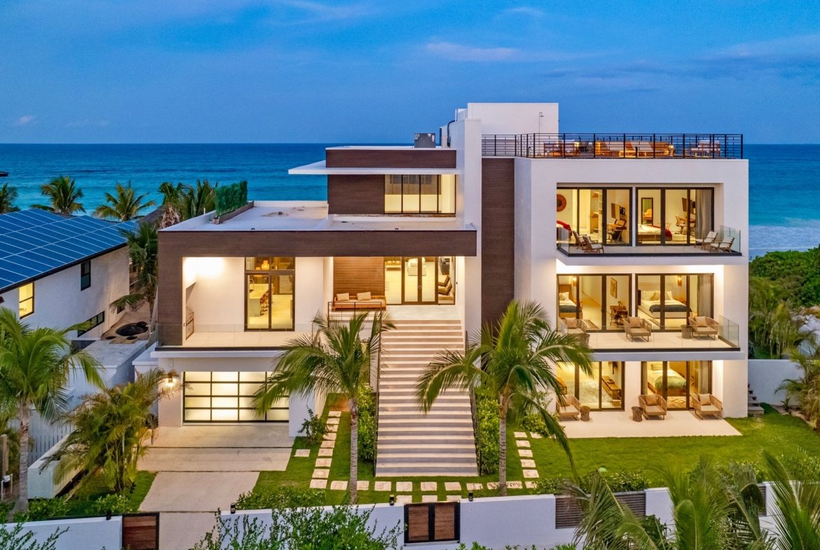 This incredible home in Harbour Island is situated on the most prestigious island in the Bahamas. La Palmeraie’s Modern House stands out as one of the most opulent vacation homes in Harbour Island. With its unique architecture and contemporary minimalist décor, it exudes an atmosphere of pure luxury and sophistication. This breathtaking oceanfront property boasts an impressive 12,000 square feet of living space and offers 9 bedrooms spread across three levels. Each room is a work of art, perfectly blending exquisite design with state-of-the-art amenities.