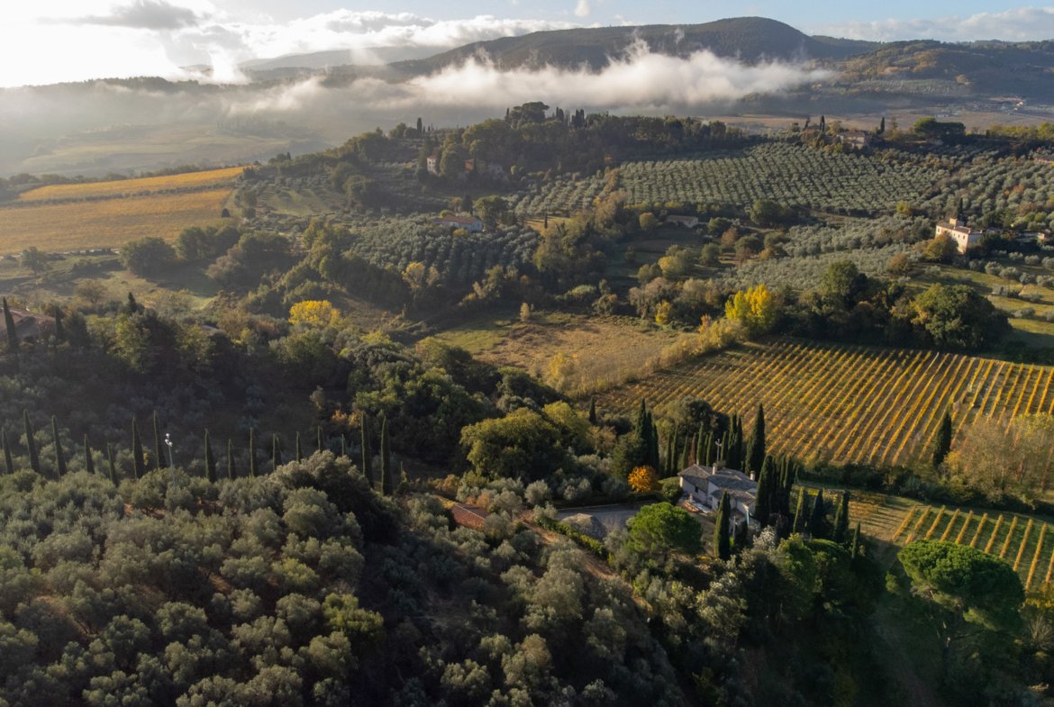 This splendid residence, accessible via a short, evocative white road framed by classic Tuscan cypresses, enjoys a dominant and very panoramic position with a magnificent view of Montepulciano.