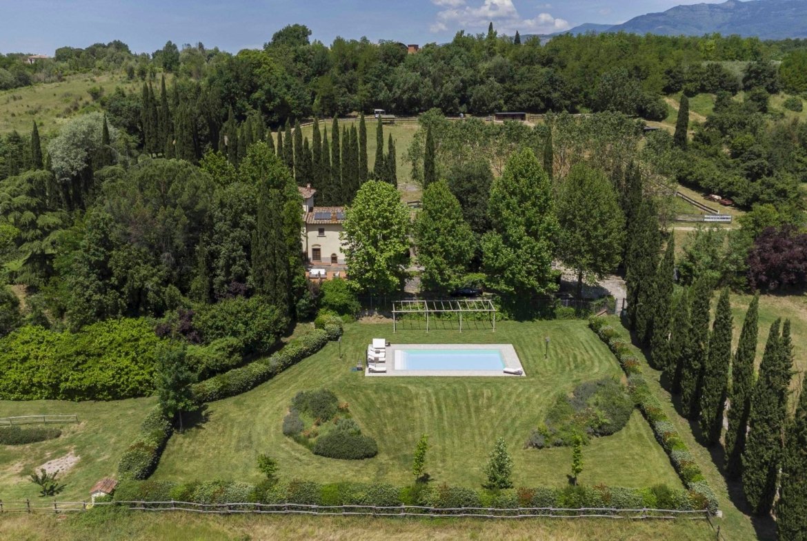 Situated in a private location surrounded by nature, with direct access from Via Valdascione, we offer for sale a refined property comprising multiple residential units, surrounded by approximately 44,200 square meters of land.